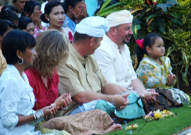 Sigi hat als “alter Balinese” jahrelange Erfahrung im Runterleiern der Gebetsmantras – und er tut das mit einer Inbrunst die einem manchmal ein bisschen erschreckt..;)