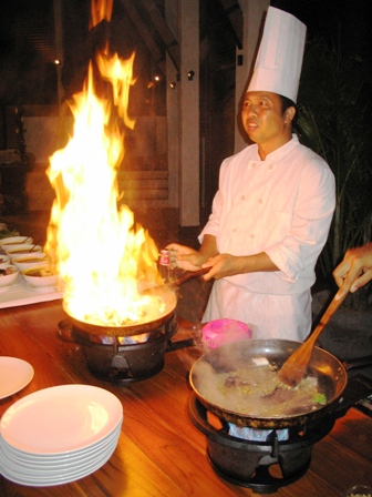 We offered yesterday the first time our new buffet “Exotic flavors of Asia”. Very successful. Luckily Ida did not set our restaurant roof on fire..:)) The live cooking was more than exiting. Repetition soon again in this theater.
