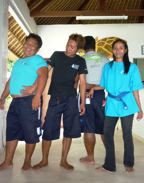 Barbara’s instructions are easy to understand. She just requested some dive center t-shirt pictures. From the staff. For some advertisement purpose.