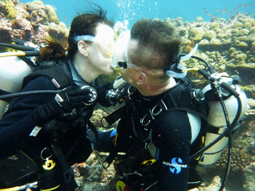 Heute hat Herbert seiner liebsten Doris einen Antrag gemacht. Unter Wasser hat er sie (mit Hilfe einer kleinen Schreibtafel) gefragt, ob sie seine Frau werden möchte. :>> :p Mit einen Kuss wurde der Antrag besiegelt… :yes: Wir freuen uns und wünschen den Beiden von Herzen alles Gute!!! 😀