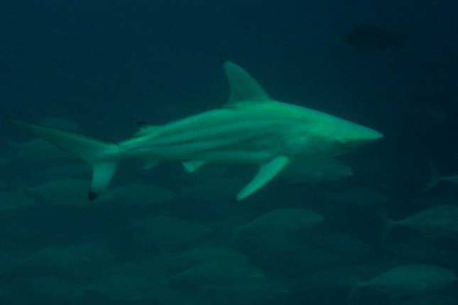 It was an Oceanic Blacktip Shark :>>:>>:>>!!! This was of course our HAI-Light đź’ˇ of the day on top of the Eagle Rays, Turtles and 50 or more Grey Reef Sharks we saw!!!
