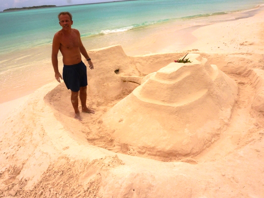 Our repeater guests Claudia and Frank had quite some fun here with us. But at one point Frank got bored and he started to build a giant sand castle. đ
