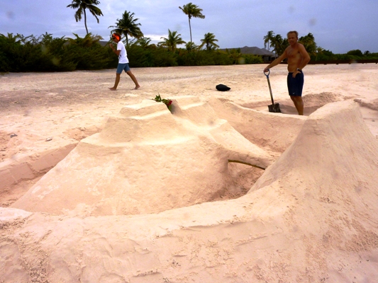 Unsere Wiederholungsgäste Claudia und Frank hatten mal wieder viel Spass hier mit uns. Doch irgendwann wurde es Frank zu langweilig und er fing an eine riesige Sandburg zu bauen. đ