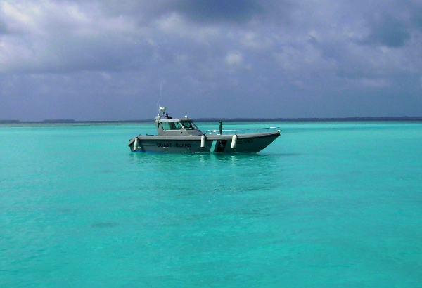 Der Maledivische Präsident besucht heute unsere Insel Kuda Funafaru. Um seine Sicherheit zu gewährleisten kreuzen schon den ganzen Morgen 2 Boote der Coast Guard hier herum.