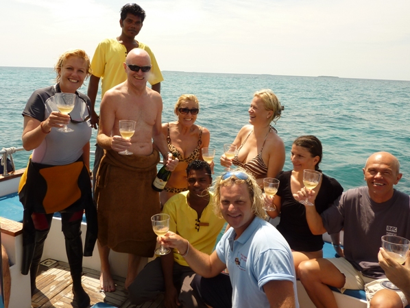 We wish Rainer all the best for his birthday!!! :yes: Even the Sharks and the Batfish from “Sharks & More” came to say congratulations. B) Later, we celebrated on the boat with champange. What a live…!!! 😀