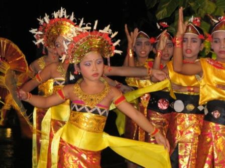 The evening continued with Balinese dances, followed by a real highlight… for the first time 16 boys and girls from elementary school performed for guests. They did a Jangger performance. This includes making music, dancing and singing. The song is about the interaction of human beings. Many of them were obviously really excited, since being 8 or 9 years old they never performed for non-Balinese people.