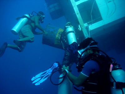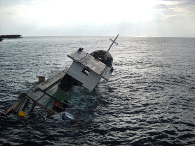 Zurück Letztes “Aufbäumen”/last resistance 29.11.2009Alle News - Filitheyo - Malediven Unsere “ALTE” Dame wird noch mal aufgerrichtet bevor es dann in die Tiefe geht. We are getting our “OLD Lady” in a straight position before it`s going down into the blue.