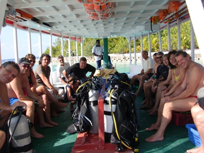 Today we went for an explorer-dive and our guests really liked the idea to dive on a new spot. 😉 As you can see on the picture they are really looking forward to jump in the water! :yes: Everybody enjoyed the drift-dive on the outer reef and together with Basti they were drawing a map afterwards…..finally the dive site just needs a name! :crazy: …..ONE WAY TICKET would be nice!:D