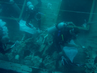 today we were cleaning our housereef around the new ship wreck. Because of the great support of our divers, we were collecting lots of rubish. Thanks a lot for your help! ;D