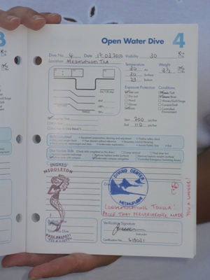 Andrew and Toulla are the kind of guests we’ll remember for a long time still to come…. Andrew, an experienced diver, managed to convince Toulla to complete her OWD course while on holiday in Medhufushi. At first, despite her best efforts, Toulla just didn’t enjoy diving & all but decided to give up :-/ ….a week later, she then decided to give it another go & not only mastered the skills she most feared but thoroughly enjoyed her diving ;D She is living proof that perseverance & determination eventually pays off! Toulla: we are so proud of you!!!! Atta girl!