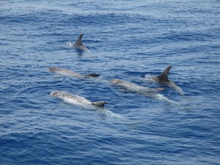 The last couple of days there was a group of dolphins around. One of them was waving with his tail.