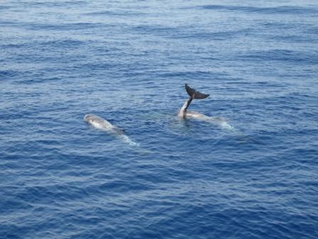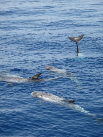 Die letzte paar Tage haben wir öffter Delfine gesehen. Eine hat uns auch nett begrüßt, mit dem Schwanz gewinkelt.