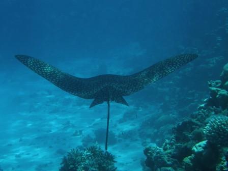 Nach einige Wochen “Urlaub” ist die Adlerrochenfamilie wieder in Naama Bay zurück. Die Tauchlehrern haben schon sorgen gemacht, wir wussten nicht wo sie hin sind. Warscheinlich haben Urlaub gemacht, aber heute waren sie wieder da. Es gibt eine Familie von 5-6 Adlerrochen, meistens morgens sind sie im Flachwasser zu sehen.:D