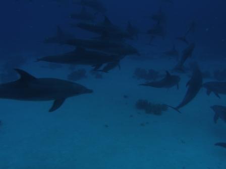 One of the most amazing things to see underwater is Dolphins and I am sure alot of people will agree with me here.:yes: In Ras Za’atar in Ras Mohammed National Park Attila and Richard with their groups had a very big school passing them with little ones aswell. They were playing and chasing the Fusiliers around. Really great experience for all!!