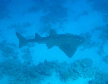 Heute hat eine Gruppe im Far Garden wieder Glück gehabt, sie haben einen Gitarhai gesehen. Das Bild ist von Inno Derksen (Holland).