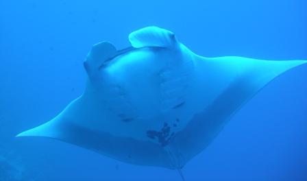 Bernd Wüllner(G), ein Wiederholer Gast von uns, hat gleich am seinem ersten Tauchtag eine Manta fotographiert. Und ich sitze hier im Office……>:XX