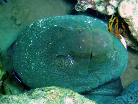 Manche Tage sehen wir keinen, manche so wie heute haben unsere Gäste in Shark Yolanda 4-6 Muränen gesehen. Einer wurde auch fotografiert.
