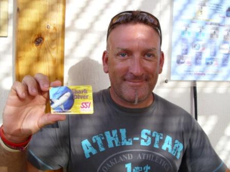 Es werden immer mehr und mehr Haie gesehen, das gibt uns mehr Möglichkeit den SSI Spezialkurs der Shark Diver Speciality zu unterichten. Unsere erste Student Aaron Bruce hat gestern seine Zertifizierung von Hugo(sein Tauchlehrer) bekommen.